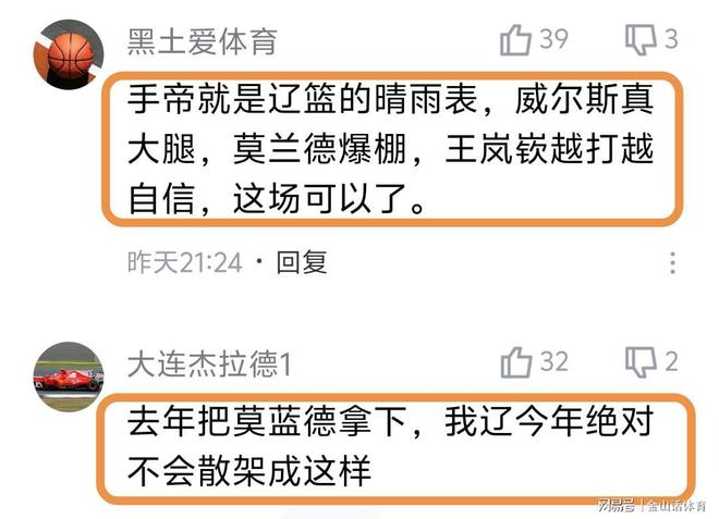 赛后,许多辽宁球迷对大莫的表现大加赞赏。“大莫当爹又当妈的一天,战神啊”;“大莫:我以为亨特是来替换我的。”;“手帝就是辽篮的晴雨表,威尔斯真大腿,莫兰德爆棚,王岚嵚越打越自信,这场可以了。”;“去年把莫蓝德拿下,我辽今年绝对不会散架成这样”……